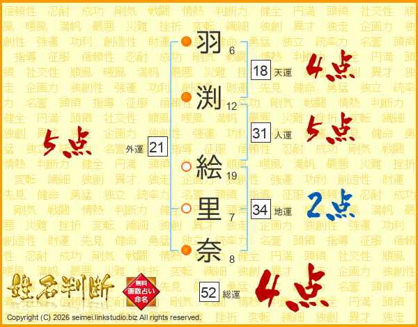 羽渕絵里奈さんの総運は52画の4点!