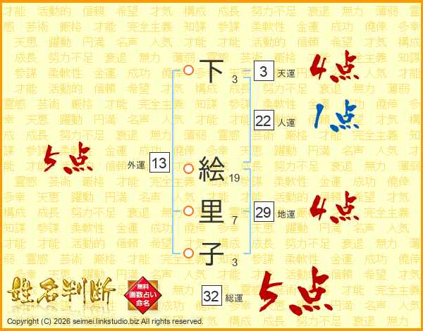 下絵里子さんの総運は32画の5点!