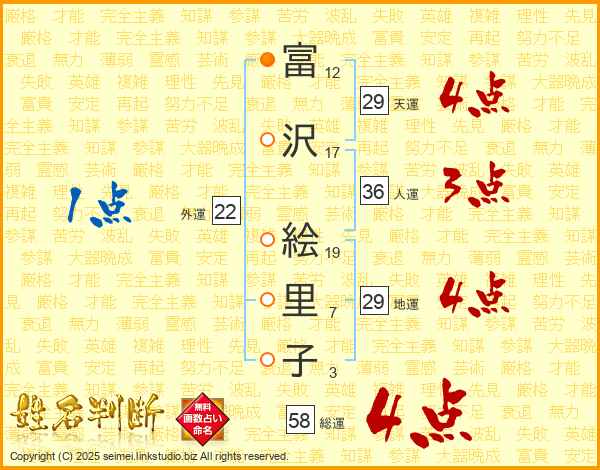 富(12画)沢(17画) 絵(19画)里(7画)子(3画)