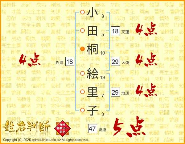 小田桐絵里子さんの総運は47画の5点!