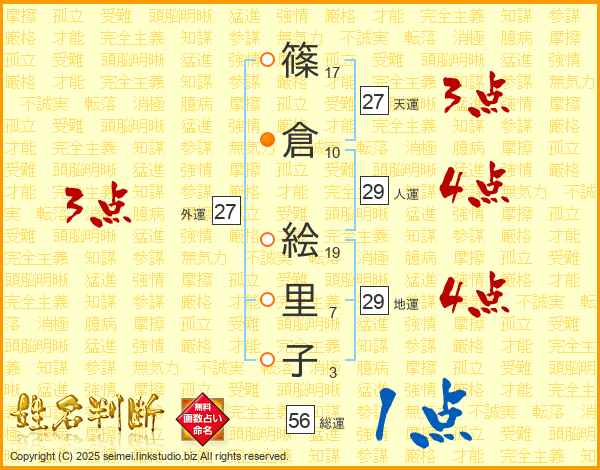 篠(17画)倉(10画) 絵(19画)里(7画)子(3画)
