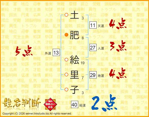 土肥絵里子さんの総運は40画の2点!