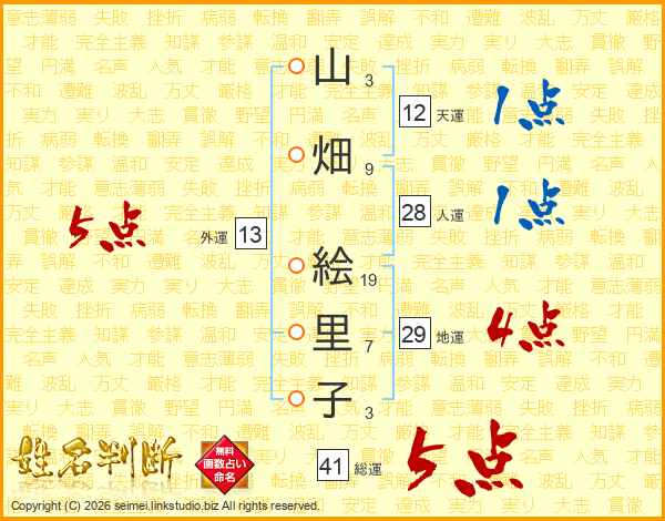 山畑絵里子さんの総運は41画の5点!
