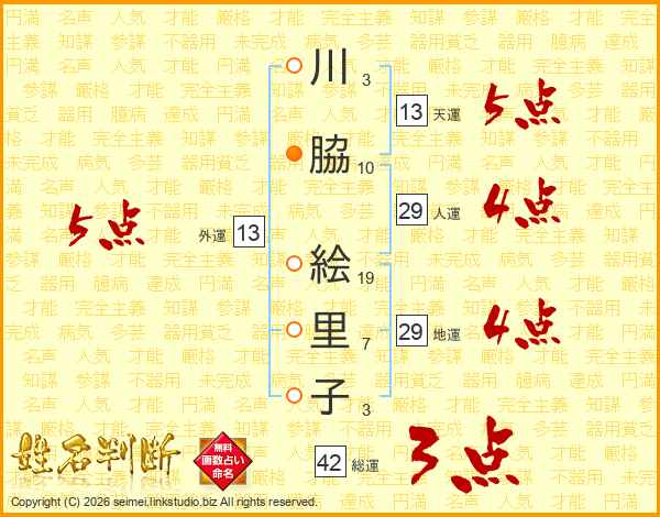 川脇絵里子さんの天運は13画の5点!
