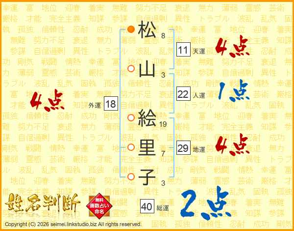 松山絵里子さんの総運は40画の2点!