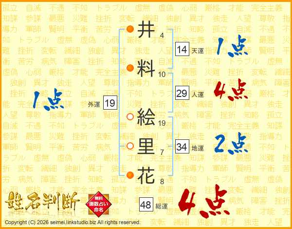 井(4画)料(10画) 絵(19画)里(7画)花(8画)