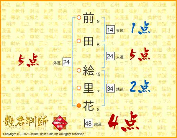 前田絵里花さんの人運は24画の5点!