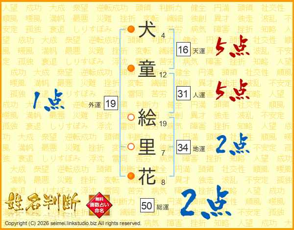 犬童絵里花さんの総運は50画の2点!