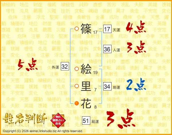 篠絵里花さんの総運は51画の3点!