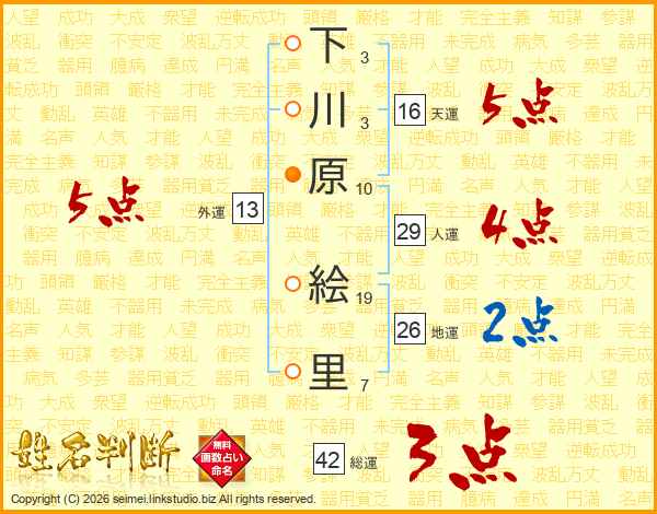 下(3画)川(3画)原(10画) 絵(19画)里(7画)
