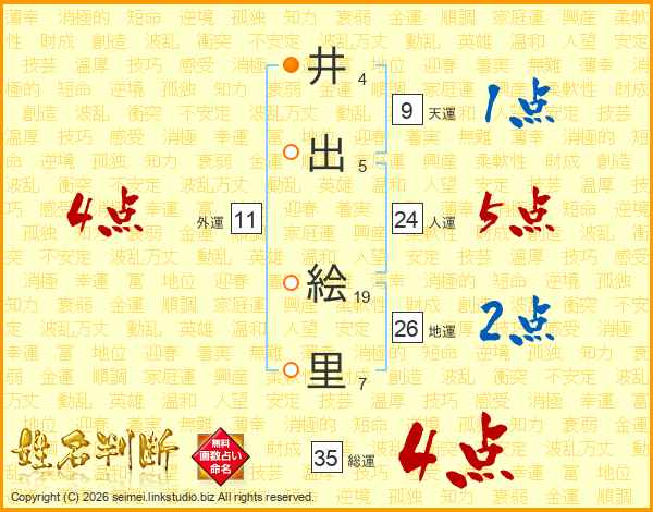井出絵里さんの地運は26画の2点!