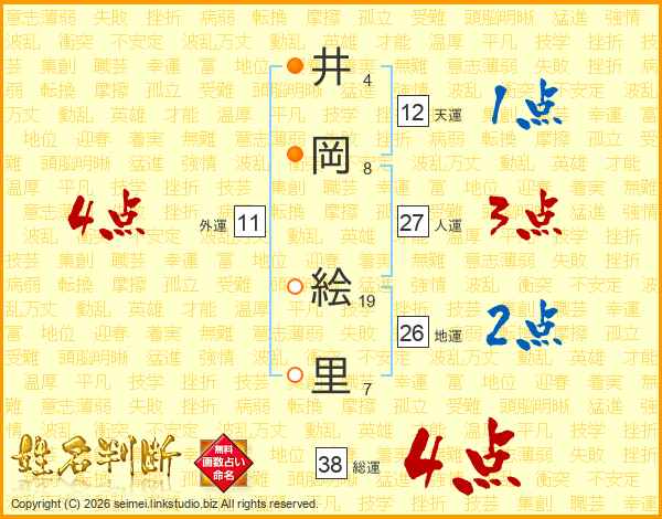 井岡絵里さんの総運は38画の4点!