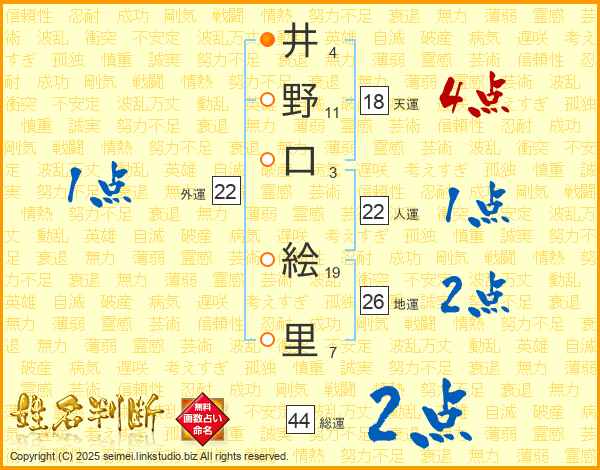 井野口絵里さんの総運は44画の2点!