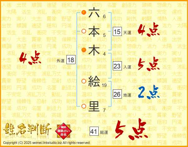 六(6画)本(5画)木(4画) 絵(19画)里(7画)