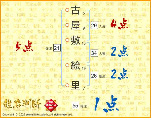 古屋敷絵里さんの天運は29画の4点!