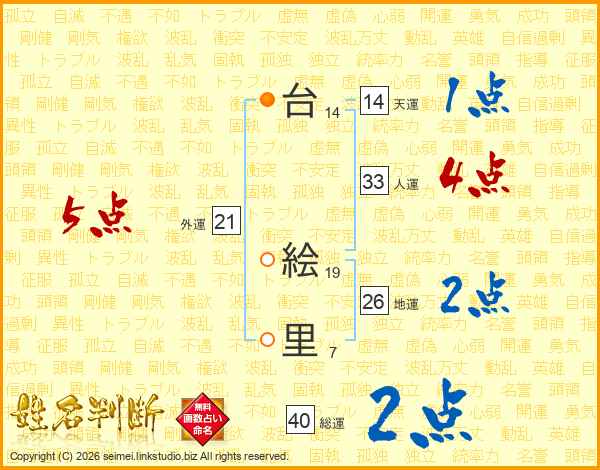 台絵里さんの天運は14画の1点!