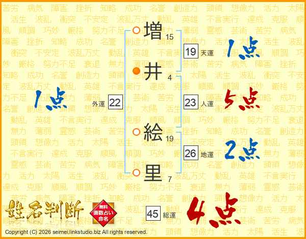 増(15画)井(4画) 絵(19画)里(7画)