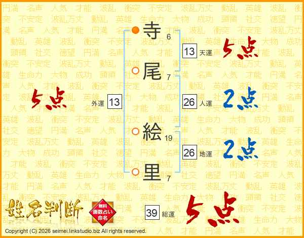 寺(6画)尾(7画) 絵(19画)里(7画)