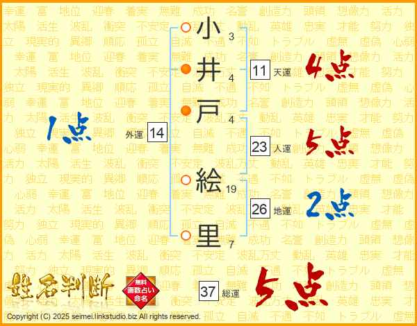 小(3画)井(4画)戸(4画) 絵(19画)里(7画)