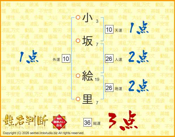 小坂絵里さんの総運は36画の3点!