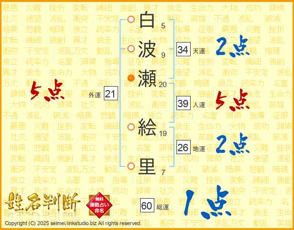 白波瀬絵里さんの総運は60画の1点!