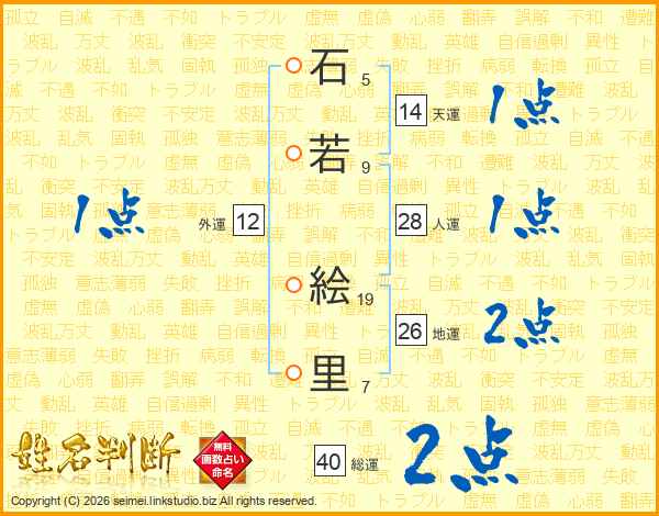 石若絵里さんの総運は40画の2点!