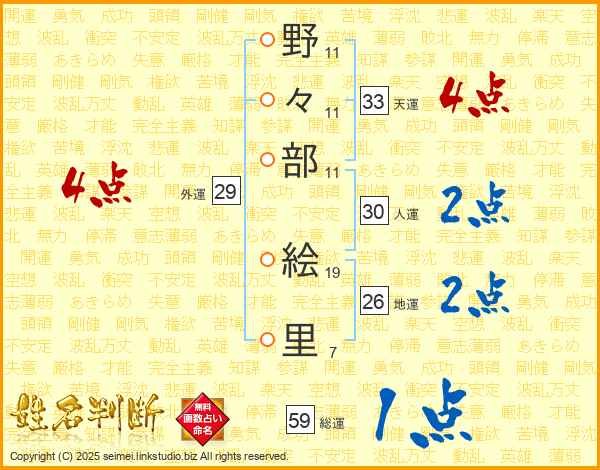 野々部絵里さんの天運は33画の4点!