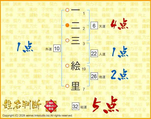 一二三絵里さんの総運は32画の5点!