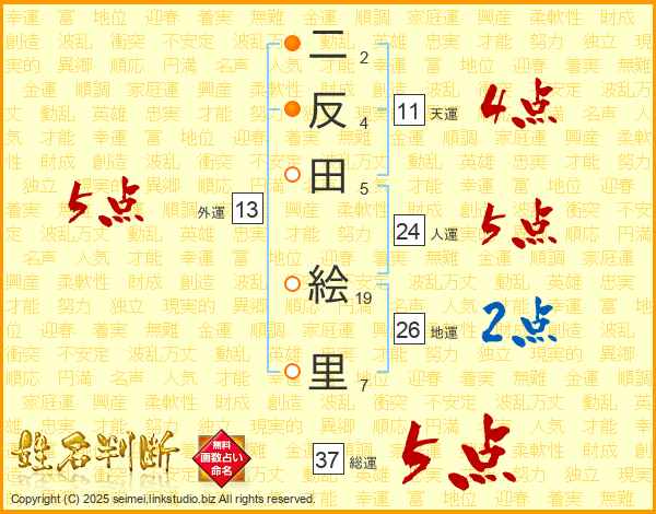 二反田絵里さんの総運は37画の5点!