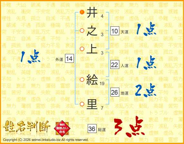 井(4画)之(3画)上(3画) 絵(19画)里(7画)