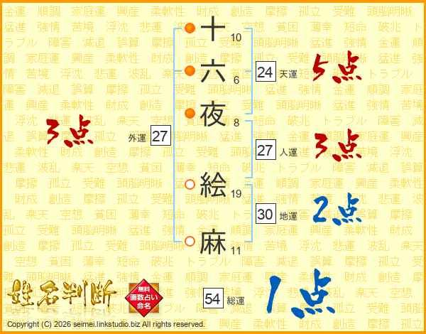 十六夜絵麻さんの総運は54画の1点!