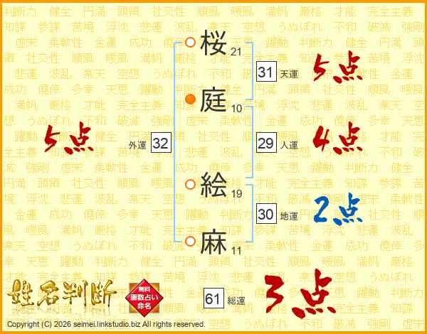 桜庭絵麻さんの外運は32画の5点!