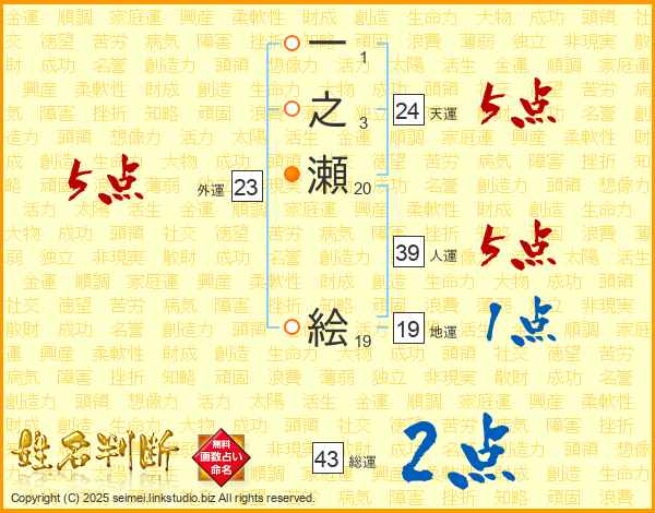 一(1画)之(3画)瀬(20画) 絵(19画)