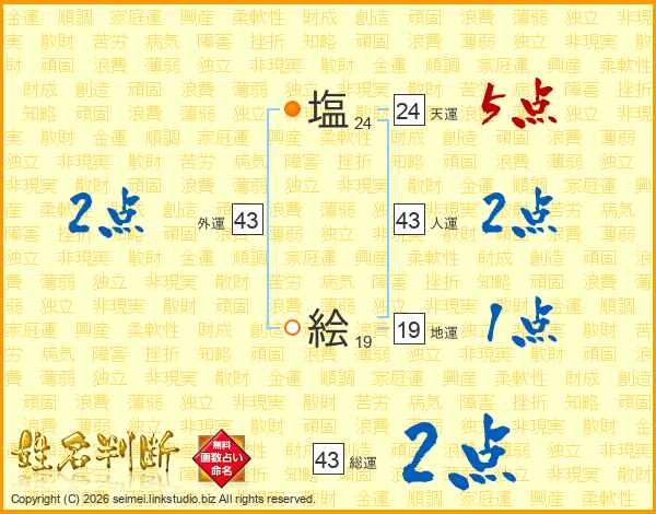 塩絵さんの人運は43画の2点!