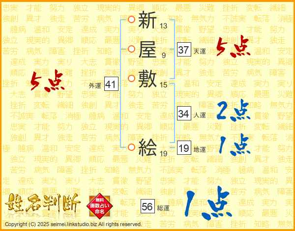 新(13画)屋(9画)敷(15画) 絵(19画)