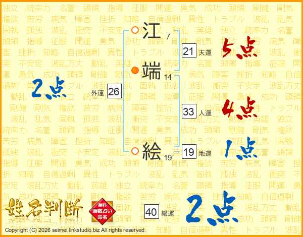 江端絵さんの総運は40画の2点!