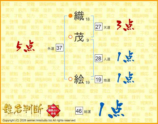 織(18画)茂(9画) 絵(19画)