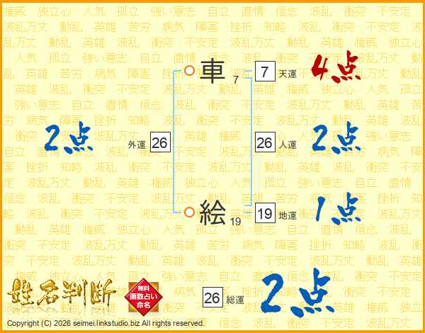 車絵さんの人運は26画の2点!