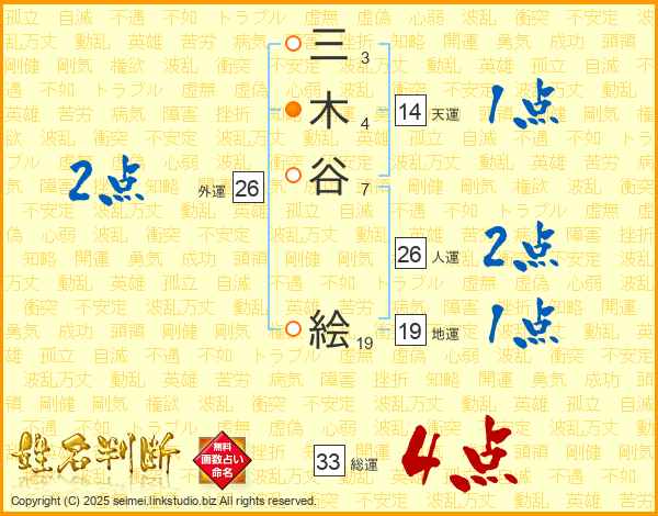 三木谷絵さんの総運は33画の4点!