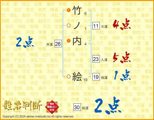竹ノ内絵さんの総運は30画の2点!