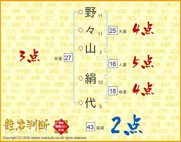 野々山絹代さんの総運は43画の2点!