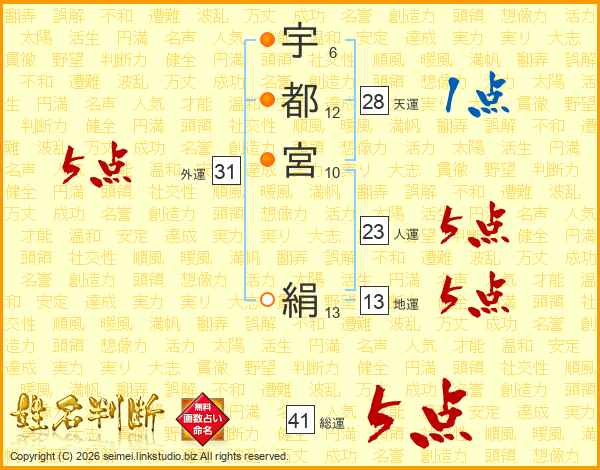 宇(6画)都(12画)宮(10画) 絹(13画)