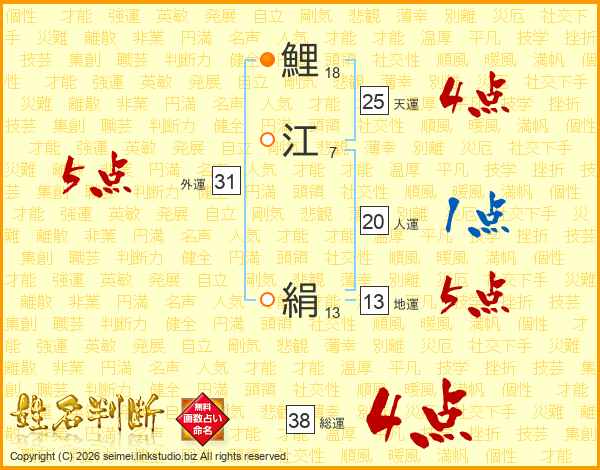 鯉江絹さんの総運は38画の4点!