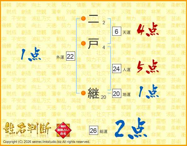 二戸継さんの総運は26画の2点!