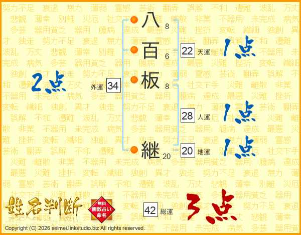 八百板継さんの総運は42画の3点!