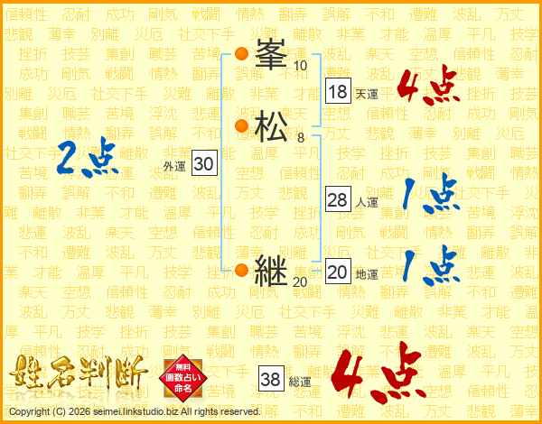 峯松継さんの総運は38画の4点!