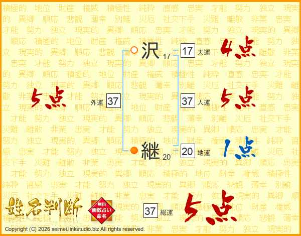 沢継さんの総運は37画の5点!