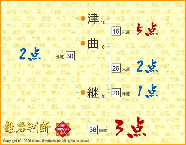 津曲継さんの人運は26画の2点!