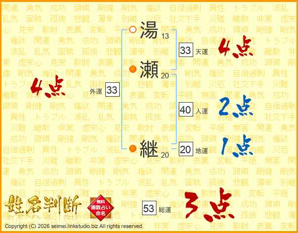 湯瀬継さんの総運は53画の3点!