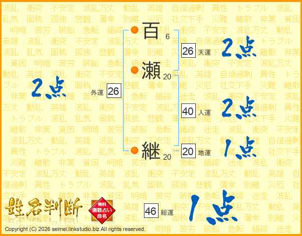 百瀬継さんの総運は46画の1点!